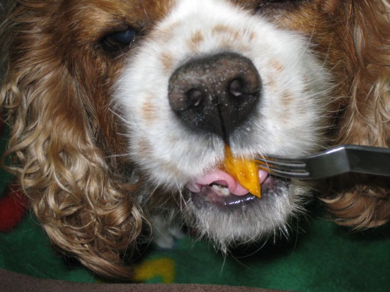 我が家のメリーも 秋の味 柿を食べました!