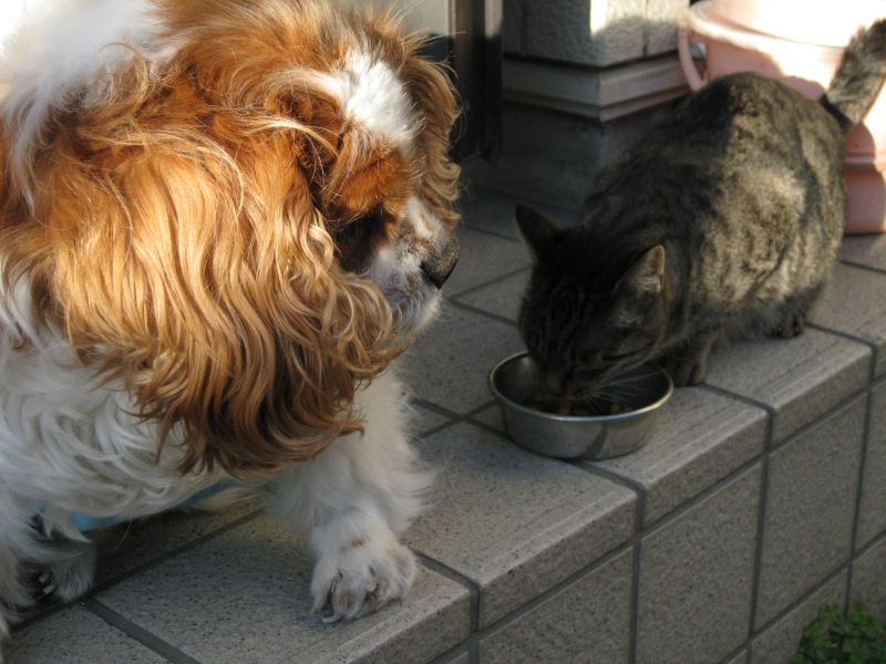メリーも裕も ほかのニャンコには 凄い勢いで吠えるのに ブーにだけは優しく