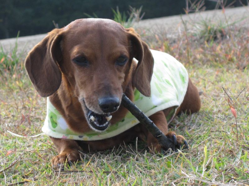 でも 時々 すごーく張り切ります!相棒の 裕(ミニチュアダックス)と 張り合うとき...